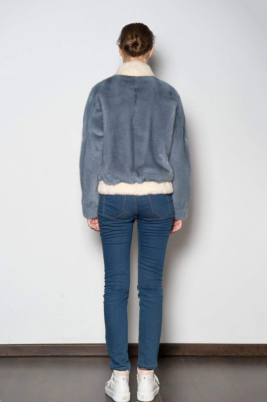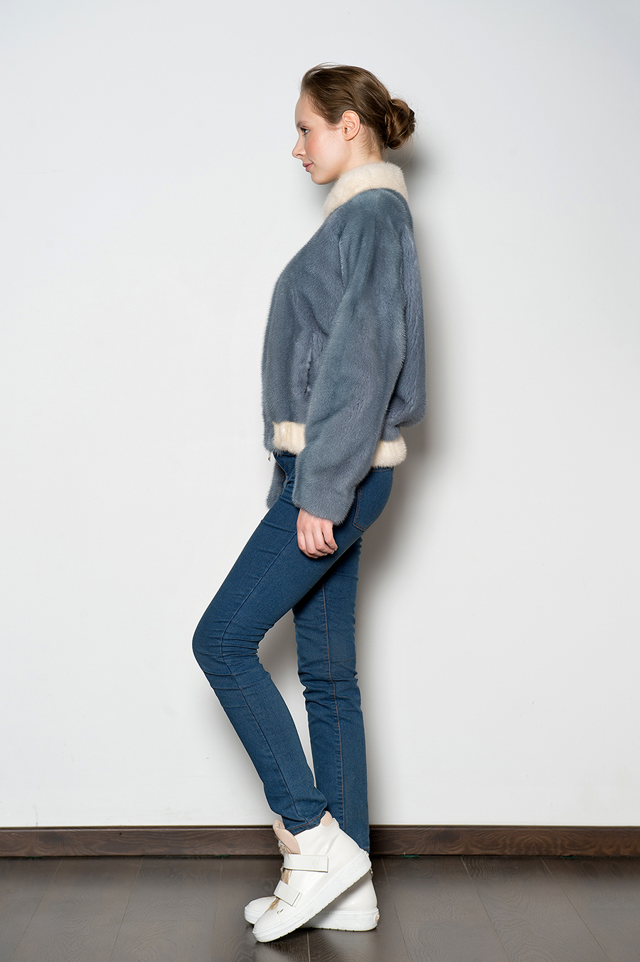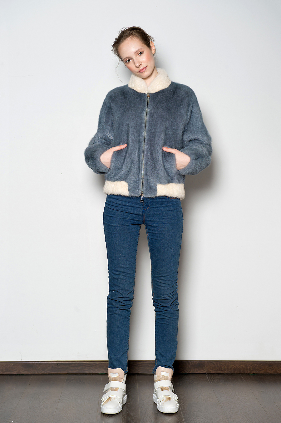 ПОЛНОЕ ОПИСАНИЕ МОДЕЛИ: Короткий бомбер на молнии из меха норки двух цветов. Воротник- стойка. Резинка внизу и на рукавах - сделана из меха норки. Два рабочих кармана. Использована норка двух цветов - холодный голубой и молочный. Стильная, удобная модель.