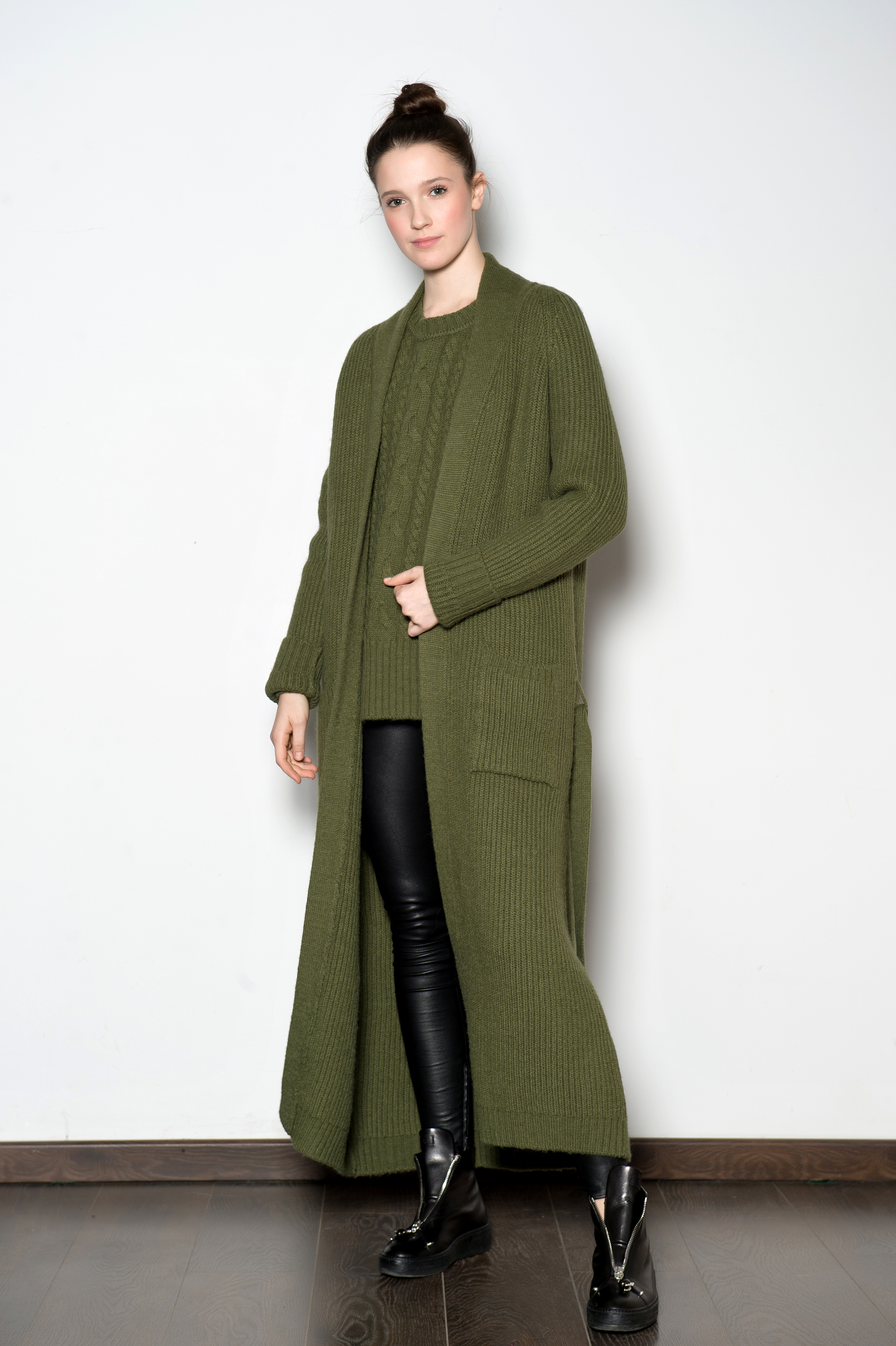 Длинное вязаное пальто-кардиган из кашемира и шерсти Альпака.