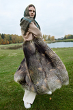 Меховое пальто. Верх - овчина (дубленка). Низ - сложноокрашенные серебристые лисицы.