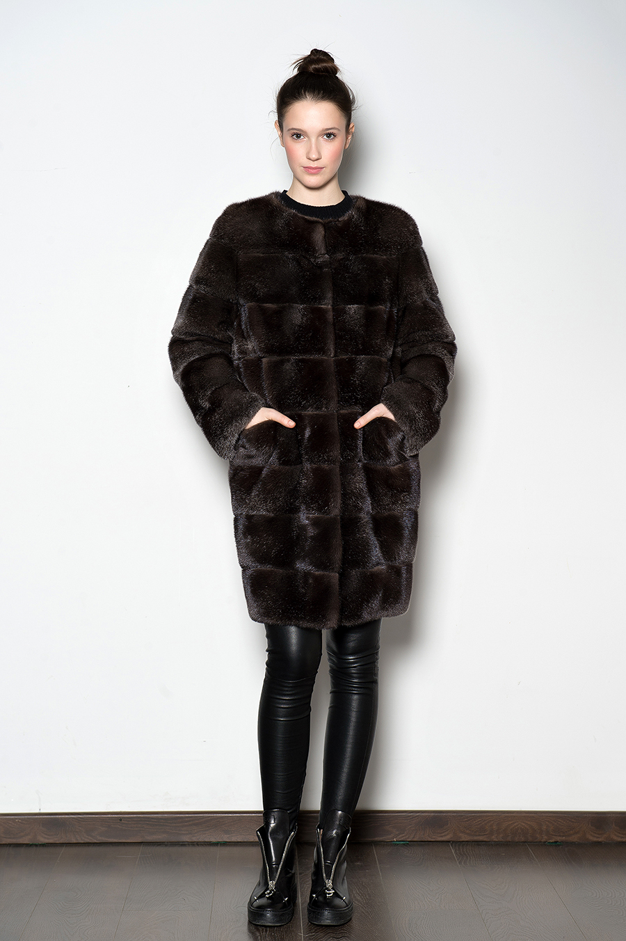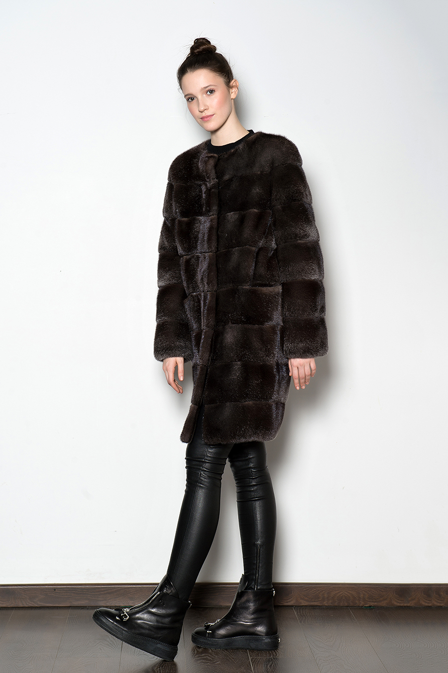 Меховое пальто без воротника из меха норки сорта STARDAST.