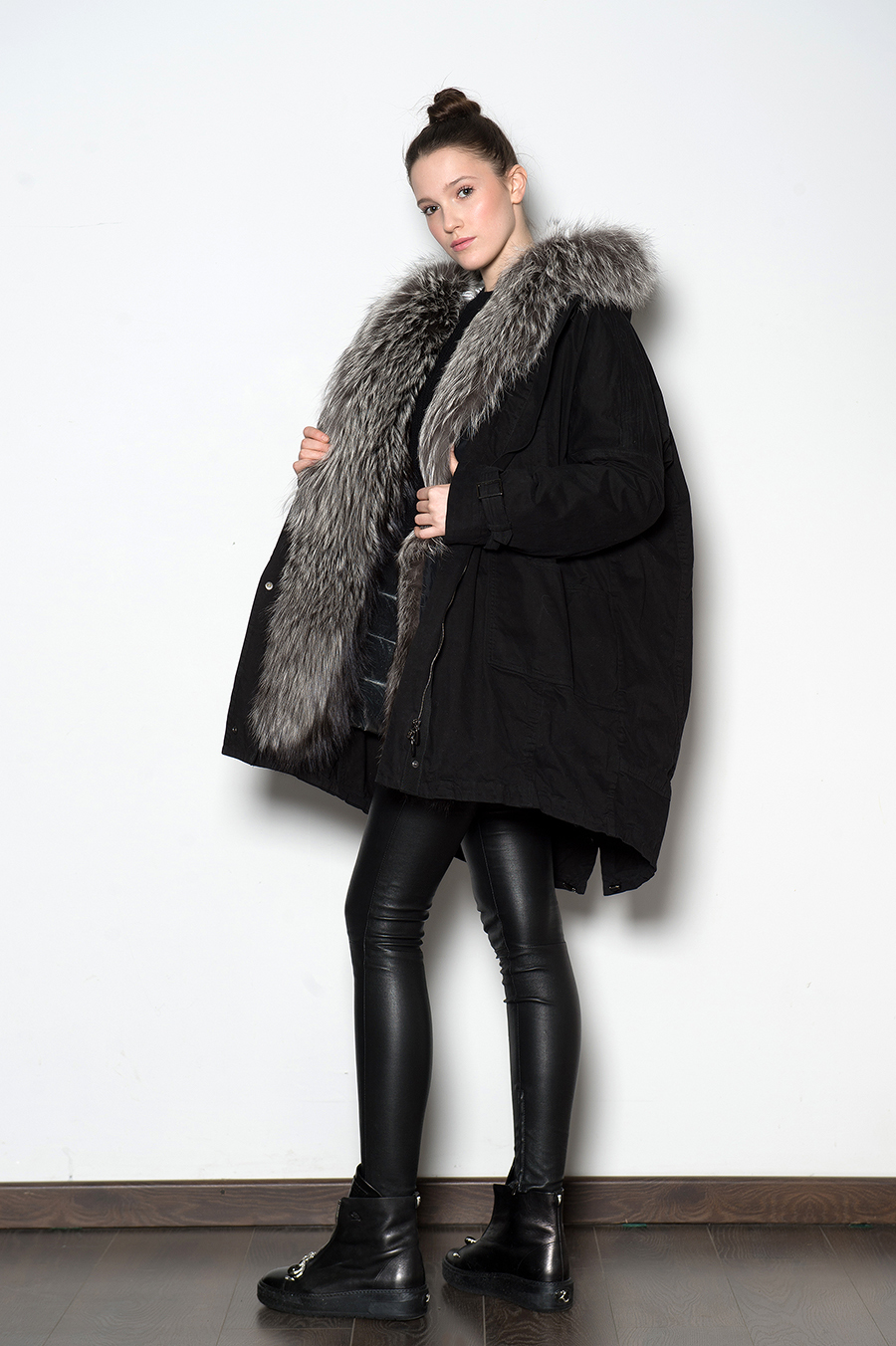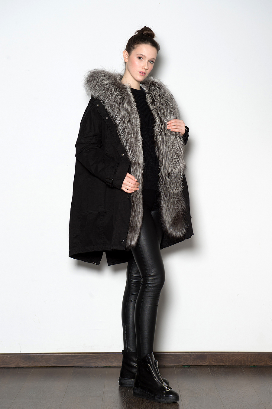 ПОЛНОЕ ОПИСАНИЕ МОДЕЛИ: Парка из хлопковой ткани со съемной подстежкой на гусином пуху. Отделка подстежки мех лисы. Верхнюю часть парки можно использовать, как удобный, легкий, комфортный тренч из хлопка. Два накладных и два прорезных кармана, кулиска. Застежки - молнии, кнопки. Цвет черный, мех длинноворсовая серебристая лиса. ПРИ ЗАКАЗЕ ПАРКИ ПРОСИМ УТОЧНЯТЬ В CALL-ЦЕНТРЕ ДОСТУПНЫЕ ДЛЯ ЗАКАЗА РАЗМЕРЫ.