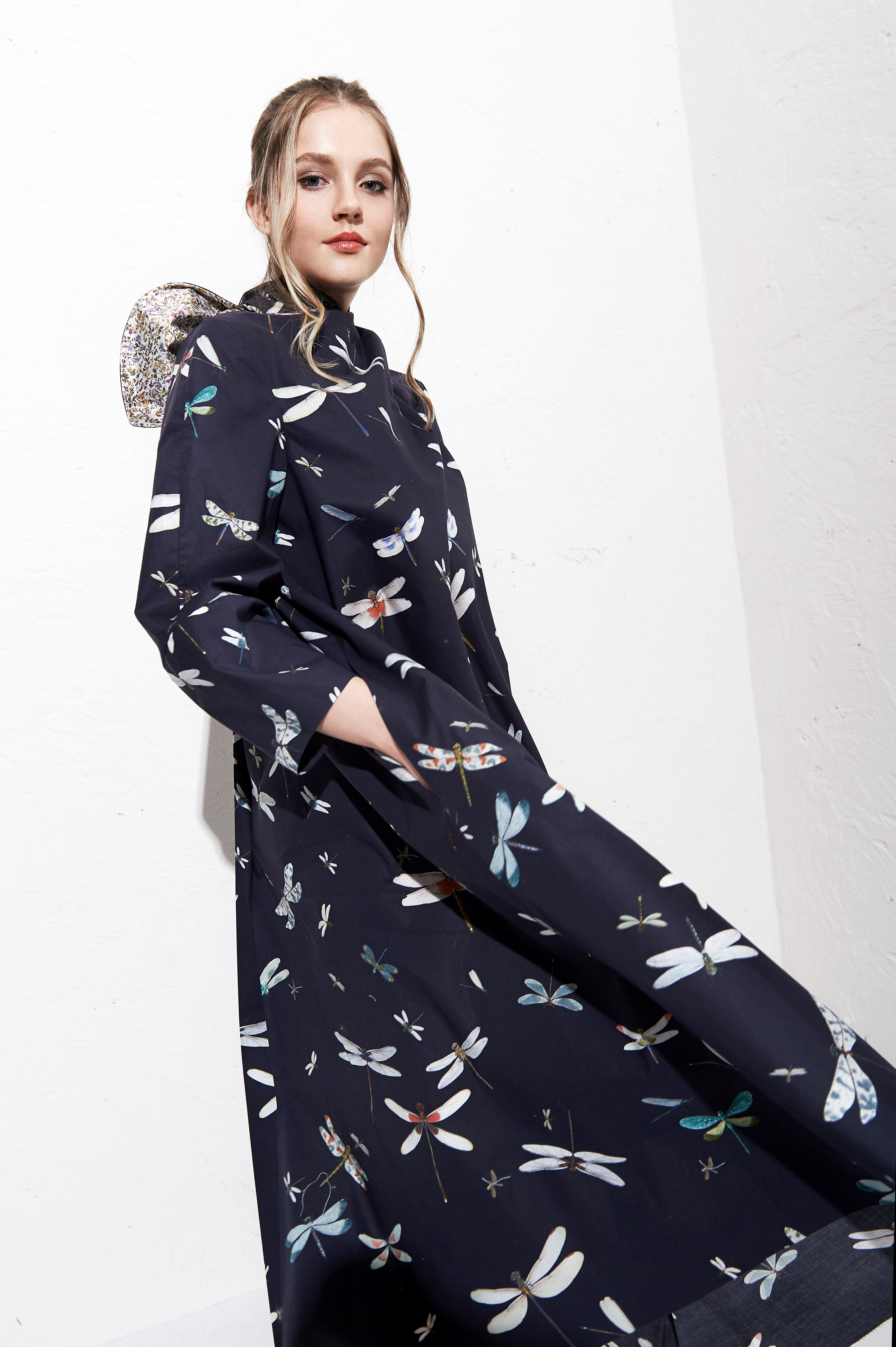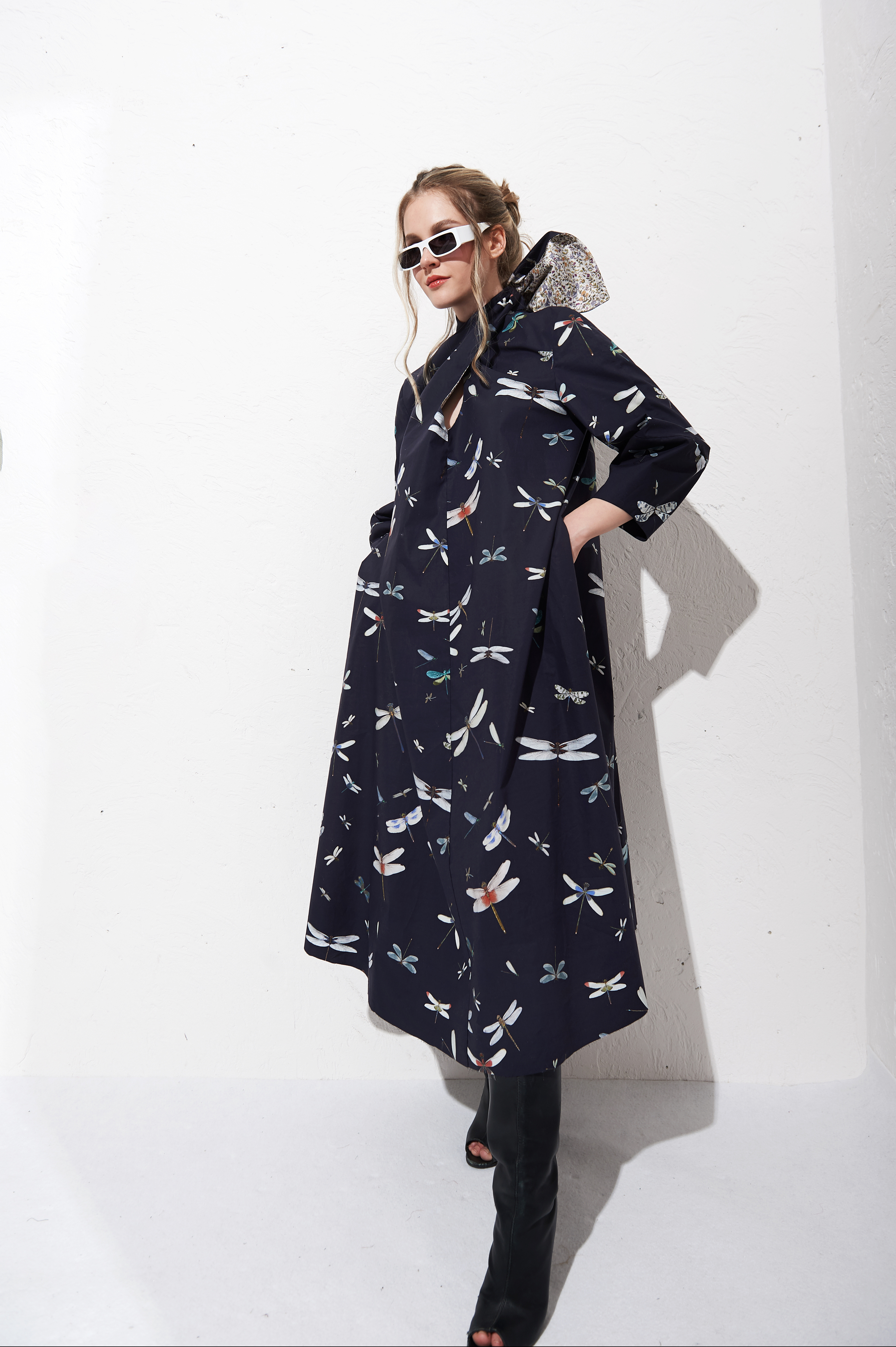 Платье из мерсеризованного хлопка темно-синего цвета, принт "СТРЕКОЗЫ".
