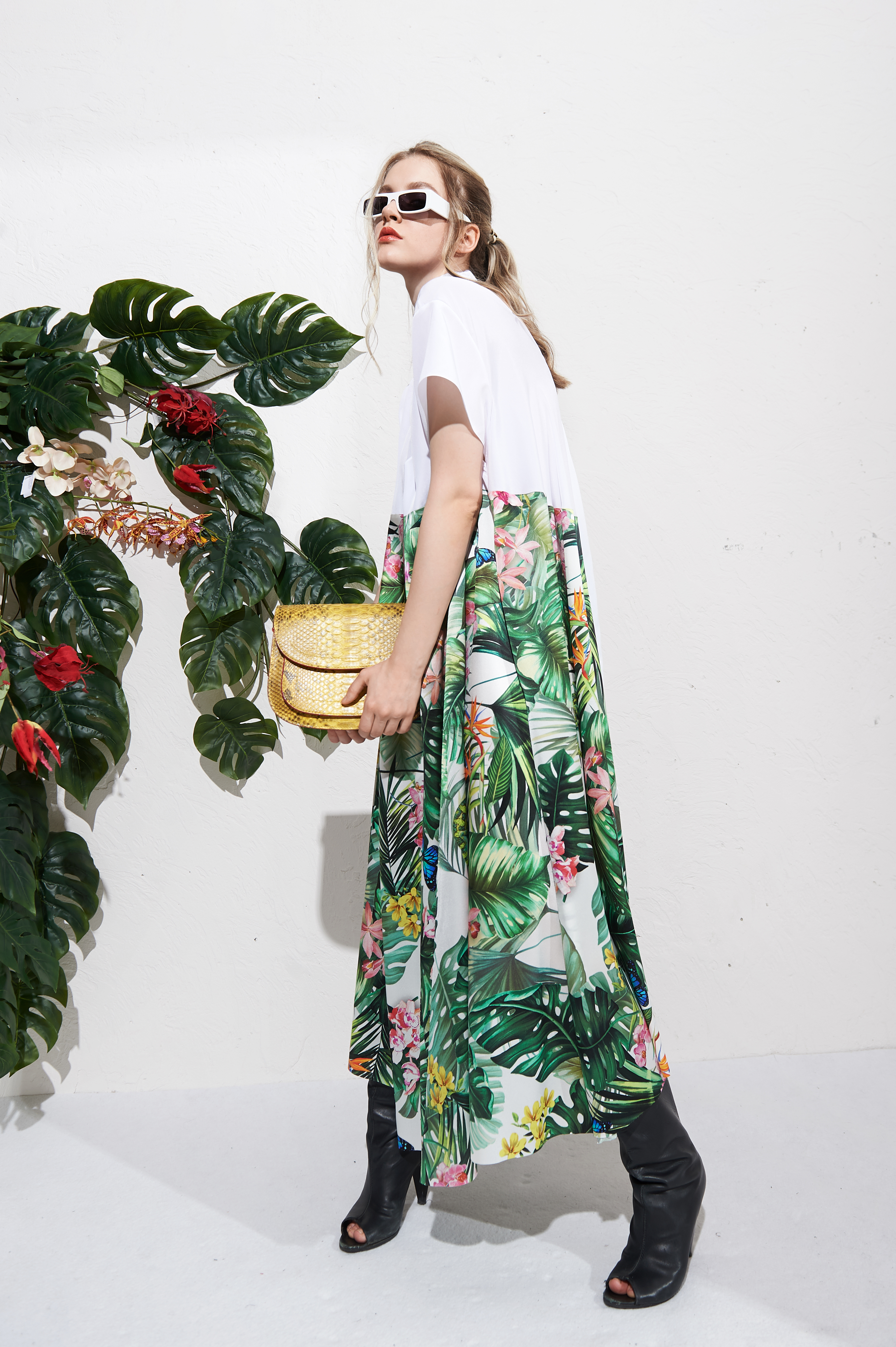 Нижняя - шелк с тропическим принтом "Орхидеи".